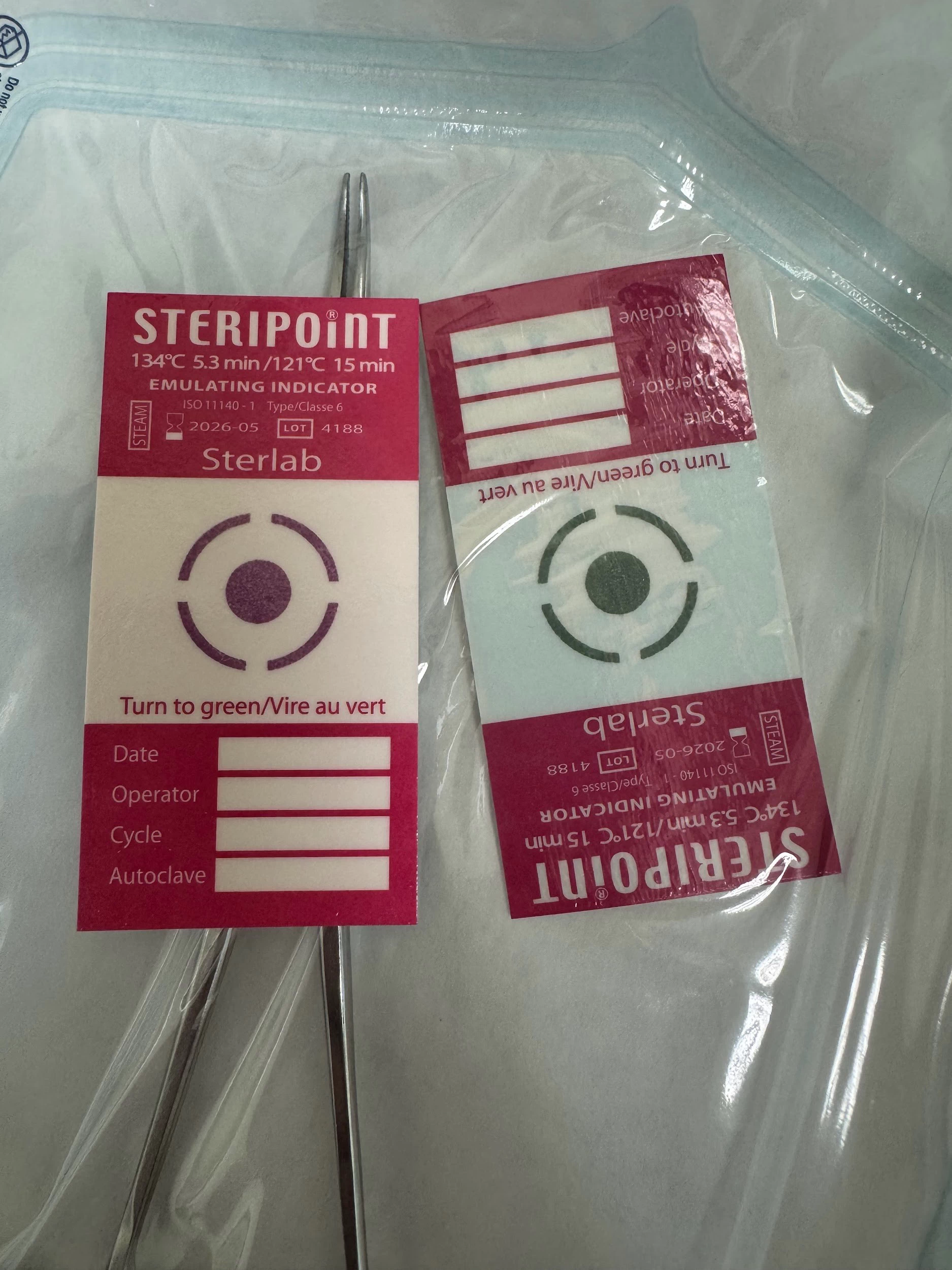 Instrumendid pakendatakse steriliseerimiskottidesse, millel on indikaatorriba.